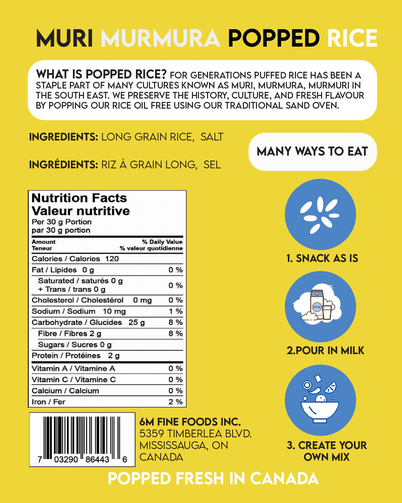 Original Salted Popped Rice. 100% Oil-free, Gluten-free, cooked in our traditional Bangladeshi sand oven and made fresh every day. Also known as Muri, Murmura, Puffed Rice.